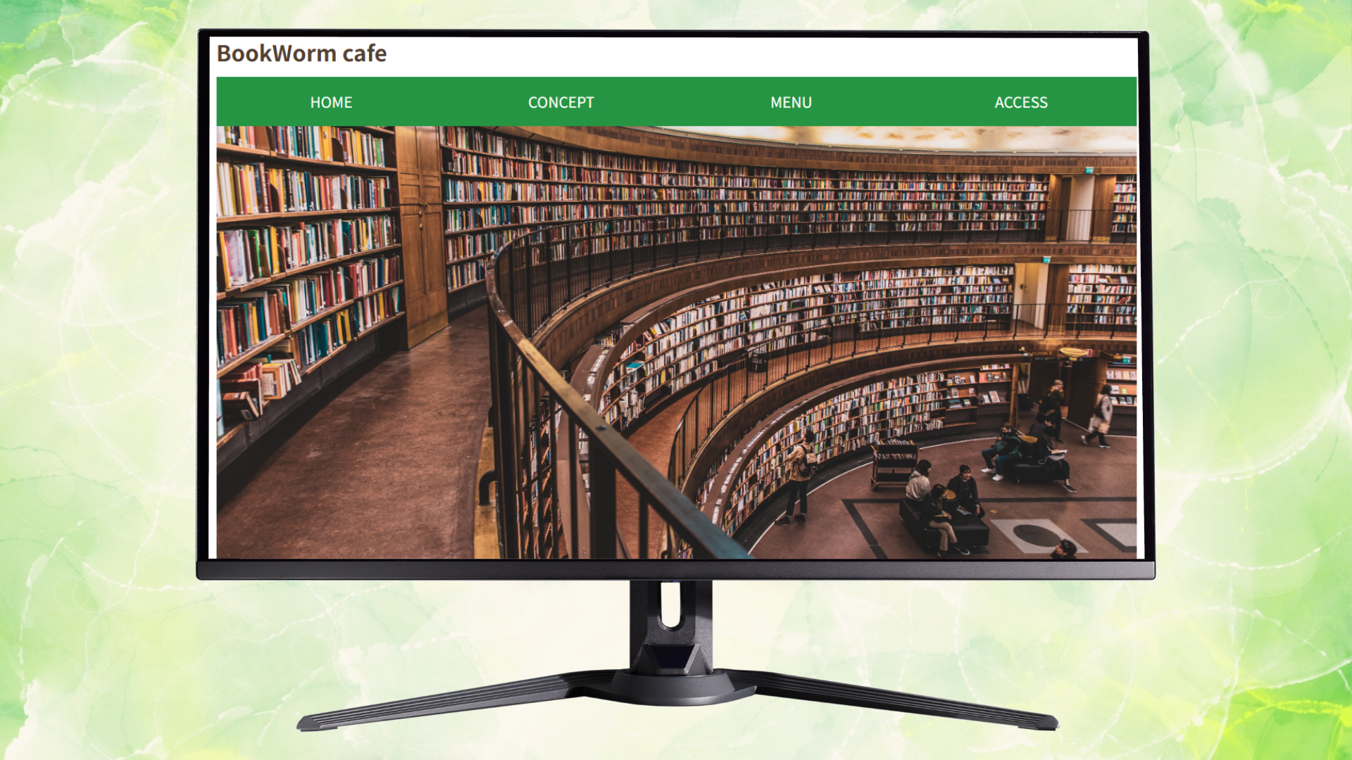 【HTML・CSS】を使い、架空のブックカフェのサイトを制作しました。