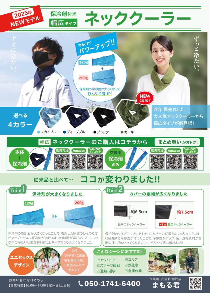 口コミレビュー促進のため、illustratorでチラシ(9種類)を制作。口コミ件数は、3698件 → 6057件になり、大幅に増えました。また、2025年度のネッククーラー販売促進のために、チラシ(2種類)も制作しました。