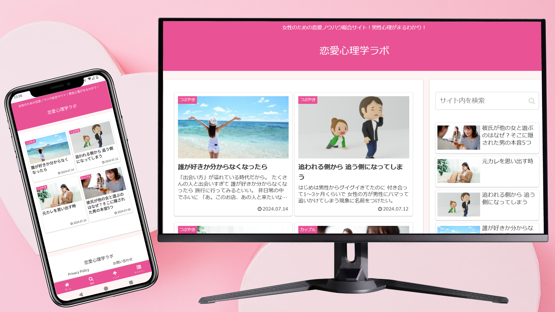 【WordPress】を使って制作した女性向け恋愛ノウハウサイトです。