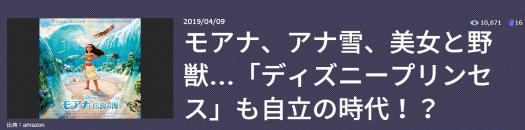 エンタメ系の記事であれば、テーマは自由だったため、ちょうどその時期に公開されいていたディズニー映画「モアナと伝説の海」を軸に、ディズニー映画の「プリンセス像」についての考察を書きました。